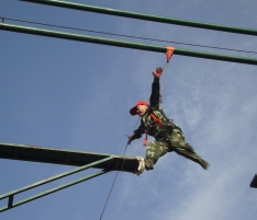 高空斷橋:在距離地面8米的高空搭起了一座獨(dú)木橋,而這個(gè)橋的中間卻是斷開的,間距1.2米-1.4米,要求每個(gè)隊(duì)員爬上8米的高空后,在空中躍起,從橋的這側(cè)跳到另一側(cè), 雖然身上掛滿了安全保護(hù)措施,但在高空跳躍,每個(gè)人都產(chǎn)生了或多或少的恐懼感,從爬上去站到高空已是一次極大的考驗(yàn),從高空躍到對(duì)面更是一次心理的挑戰(zhàn)。有的同伴從滿臉通紅到面色蒼白,有的戰(zhàn)戰(zhàn)兢兢不敢站立,有的站了許久不敢躍起,還有的上去之后直叫:“我有恐高癥!是真的……”在隊(duì)長(zhǎng)的帶領(lǐng)下,我們?yōu)槊恳粋(gè)參訓(xùn)的隊(duì)員“加油”,目送他們一個(gè)一個(gè)爬上搖搖晃晃的高桿,然后不斷呼喊他們的名字,每完成一個(gè)步驟都熱烈地鼓掌高呼。結(jié)果,全隊(duì)20多名隊(duì)員都順利完成了這項(xiàng)訓(xùn)練,zui后大家用熱烈的掌聲慶賀自己的成功和勝利。 此項(xiàng)目心得體會(huì):表面看起來很難的事,其實(shí)并沒有想象中那么可怕。在工作、生活中,遇到困難并不可怕,怕的是失去解決困難的勇氣和信心!心理的障礙是zui難逾越的,我們?nèi)绻蔀閺?qiáng)者,首先就必須挑戰(zhàn)自己的恐懼感,當(dāng)我們豁出去一搏,勇敢地跨出一小步,也許就能抓住屬于自己的機(jī)會(huì),實(shí)現(xiàn)人生一大步的跨越。