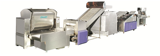 上期小編介紹到,2015年初,北京物美、永輝等各大超市悄然上市了一種馬鈴薯饅頭,備受廣大市民的關(guān)注。馬鈴薯饅頭也就是土豆饅頭,是由中國農(nóng)科院歷經(jīng)兩年多時間研制成功的。期間,由于土豆粉黏性較高,普通老式饅頭生產(chǎn)線無法滿足生產(chǎn),設(shè)備難題一度成為阻礙土豆饅頭走進百姓餐桌上的“絆腳石”。 俗話說,“巧婦難為無米之炊”,沒有得心用手的機器設(shè)備,怎能生產(chǎn)出“貌美”又營養(yǎng)的馬鈴薯饅頭。在研發(fā)與生產(chǎn)方的聯(lián)合攻關(guān)下,河南萬杰智能科技采用防粘材料,通過溫度調(diào)控降低發(fā)酵速度等技術(shù),研發(fā)出全新馬鈴薯饅頭生產(chǎn)線,使土豆饅頭zui終從實驗室走向百姓餐桌,究竟如何攻克一道道技術(shù)難關(guān),我們先從馬鈴薯饅頭生產(chǎn)線的生產(chǎn)工藝說起。 1、自動和面,自動輸送,全自動化生產(chǎn),提高生產(chǎn)效率。 2、高效節(jié)能,采用連續(xù)壓面,保持面筋網(wǎng)絡(luò)的完整均勻。 3、充分利用微電腦編程控制、光電感應(yīng)技術(shù)代替人工操作。 4、科學化設(shè)計,操作簡單,維修方便。 5、仿手工揉面,口感細膩純正。 6、采用優(yōu)質(zhì)不銹鋼及PE活四氟材料,確保衛(wèi)生安全。