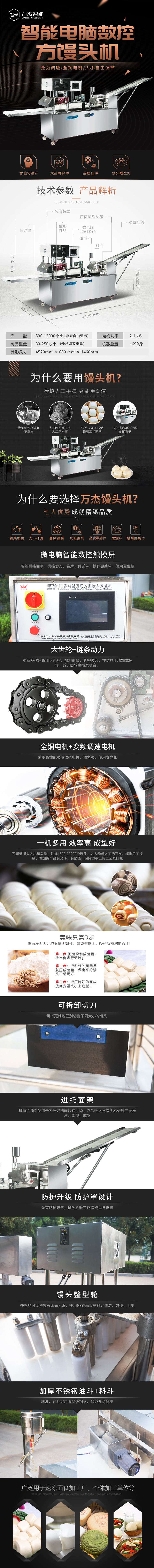 DMT90-Ⅲ觸摸屏微電腦控制方饅頭生產線,整個機組配備有SIKE光電、進口變頻調速電機,PLC數控觸摸屏操作,與食品接觸部分采用優質不銹鋼,確保生產運行平穩、可靠、衛生。